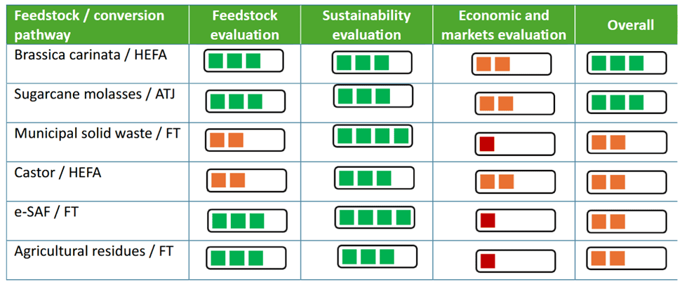 The feasibility study for Ethiopia, funded by the European Union, builds upon the 2021 national SAF Roadmap. Two main feedstocks were identified. Brassica carinata or Ethiopian mustard is an oilseed crop, allowing the oil to be processed and used in the commercially mature HEFA process. Additionally, molasses, a by-product from sugarcane cultivation, can be fermented for the AtJ process.