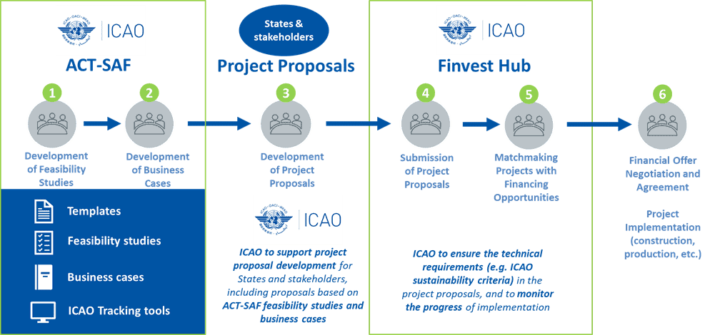 Implementation support is one of the four building blocks of the ICAO Global Framework alongside policy and planning, regulatory framework and financing. Recognizing that achieving the sector’s collective long-term aspirational goal (LTAG) of net-zero carbon emissions by 2050 requires a robust, targeted and tailored capacity-building and implementation support, ICAO launched the Assistance, Capacity-building and Training for Sustainable Aviation Fuels (ACT-SAF) programme in 2022. ACT-SAF provides targeted support to ICAO Member States, enabling them to participate fully in the deployment of SAF and other cleaner energy solutions in the global transition to sustainable aviation, ensuring that no country is left behind.