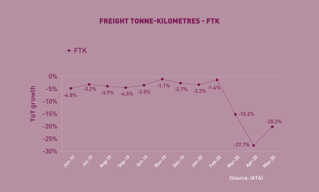 May 2020: -46.7%, -58.3%, and -2.2% YoY in terms of aircraft departures, passengers and freight for the Top 15