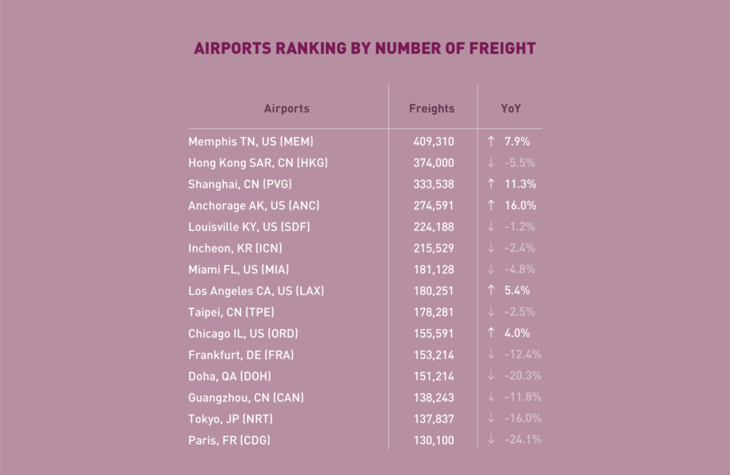 In terms of freight, the Top 15 airports reported a decline of -2.2% YoY. Majority of the Top 15 airports were in Asia/Pacific and US. Five airports recorded positive growth, with Anchorage and Shanghai growing double-digitally by +16.0% and +11.3%, respectively. Memphis ranked 1st up by +7.9%, followed by Hong Kong with a fall of -5.5%.