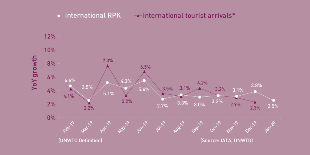 OAG: Official Airline Guide; RPK: Revenue Passenger-Kilometres; UNWTO: World Tourism Organization; YoY: Year-on-year; YTD: Year-to-date.