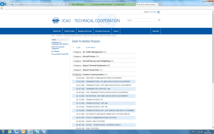 This translates into a user-friendly experience for ICAO suppliers. A supplier clicking ‘ICAO Procurement Categories’ will now be able to view the Services categories separately from the Goods categories. The Goods, in turn, are broken down into Goods for Aviation Purposes and Goods for General Purposes.